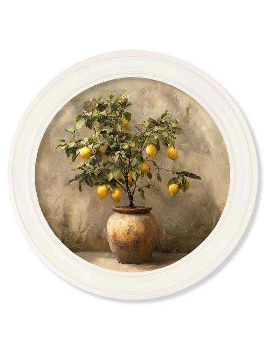 Mediterranean Lemon Tree - Oxford Strong White Round Frame