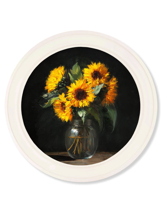 Sunflowers After Dark - Oxford Strong White Round Frame