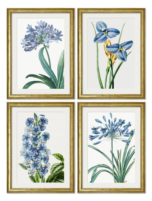 Blue Floral Illustrations Set of 4 Prints