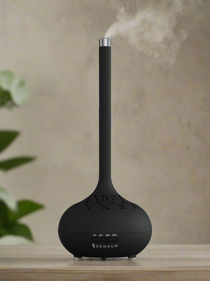 Transform your living space with the stylish Sensum Matt Black Mist Diffuser. This unique diffuser not only emits a fragrant mist, but also boasts LED lights for a mesmerizing visual display. Its 500ml capacity allows for 8 hours of operation, creating a luxurious and aromatic atmosphere. The package includes a power adapter, measuring cup, and is compatible with our premium fragrance oils. Experience the perfect blend of form and function as this mist diffuser adds sophistication and captivating scents to your home.