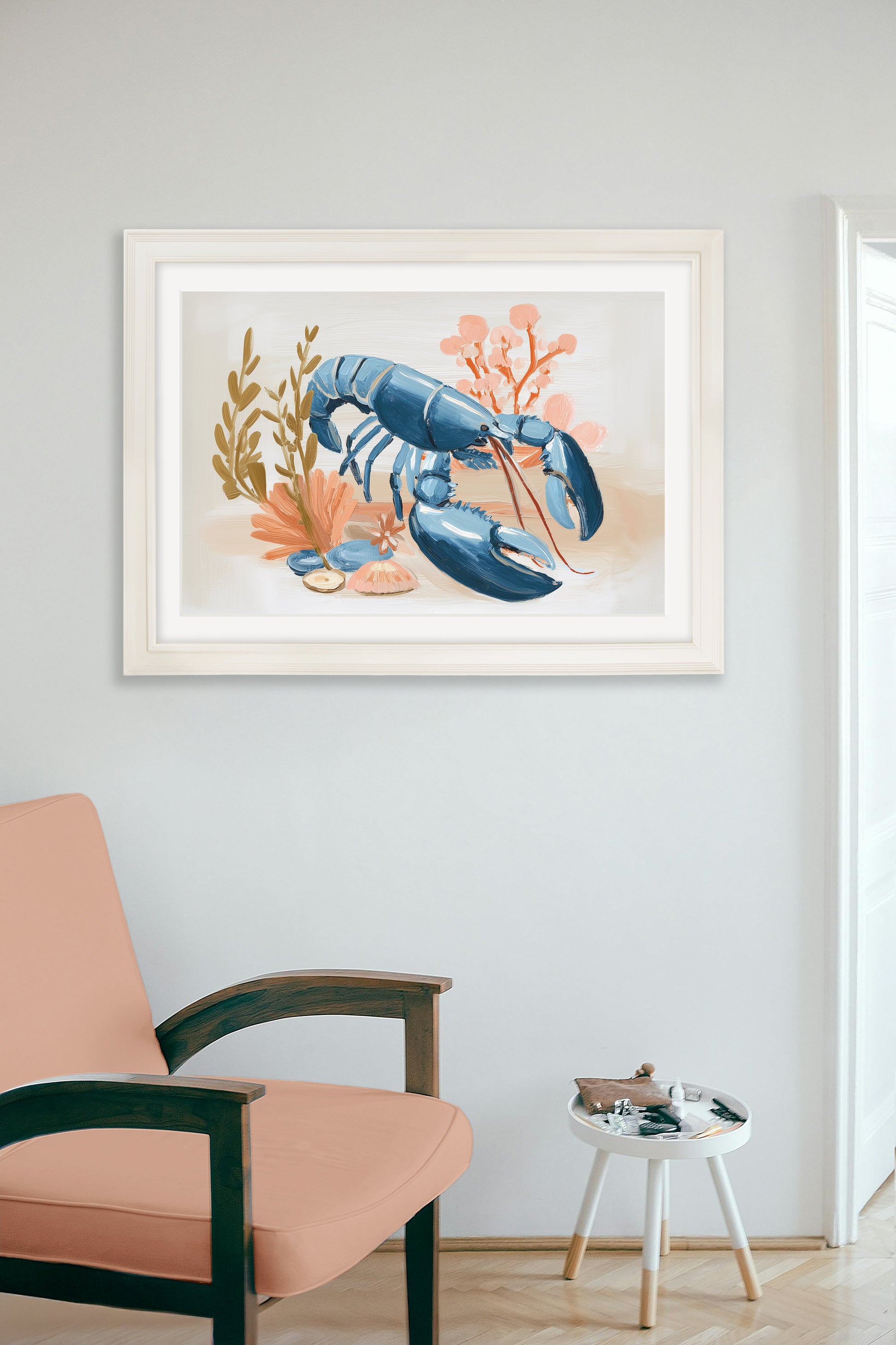 These charming coastal prints feature a beautifully illustrated crab and lobster in soothing ocean blues with soft coral and sandy accents. The expressive style and gentle colour blending gives the prints a relaxed feel, perfect for adding a touch of coastal charm. Delicate brushstroke textures and thoughtful detailing adds depth, while the surrounding shoreline-inspired foliage adds a natural touch. Set against a soft, neutral background and finished in our Cream Hurstwood frame with mount, these prints work beautifully as a standalone or paired together.