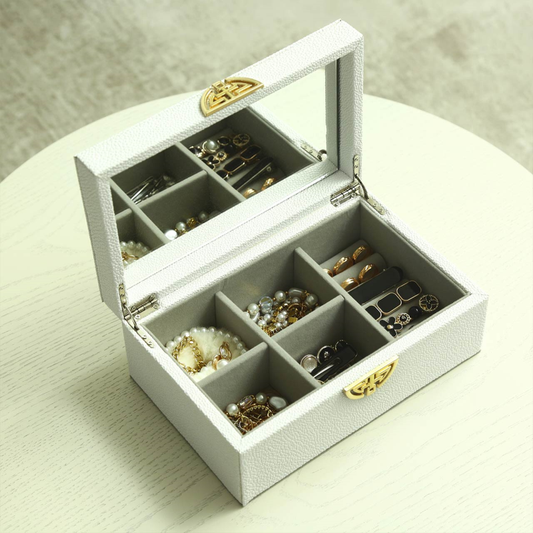Elegant White Faux Leather Jewellery Box with Mirror Lid