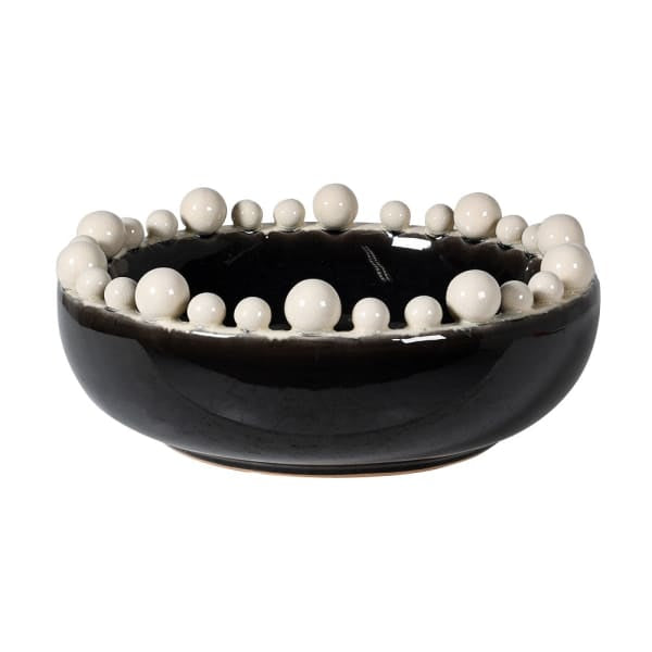 An essential addition to your home's aesthetic, this eye-catching round bowl with its two tone black & cream colours serves as a charming focal point. Perfect for adding a touch of class to any space!