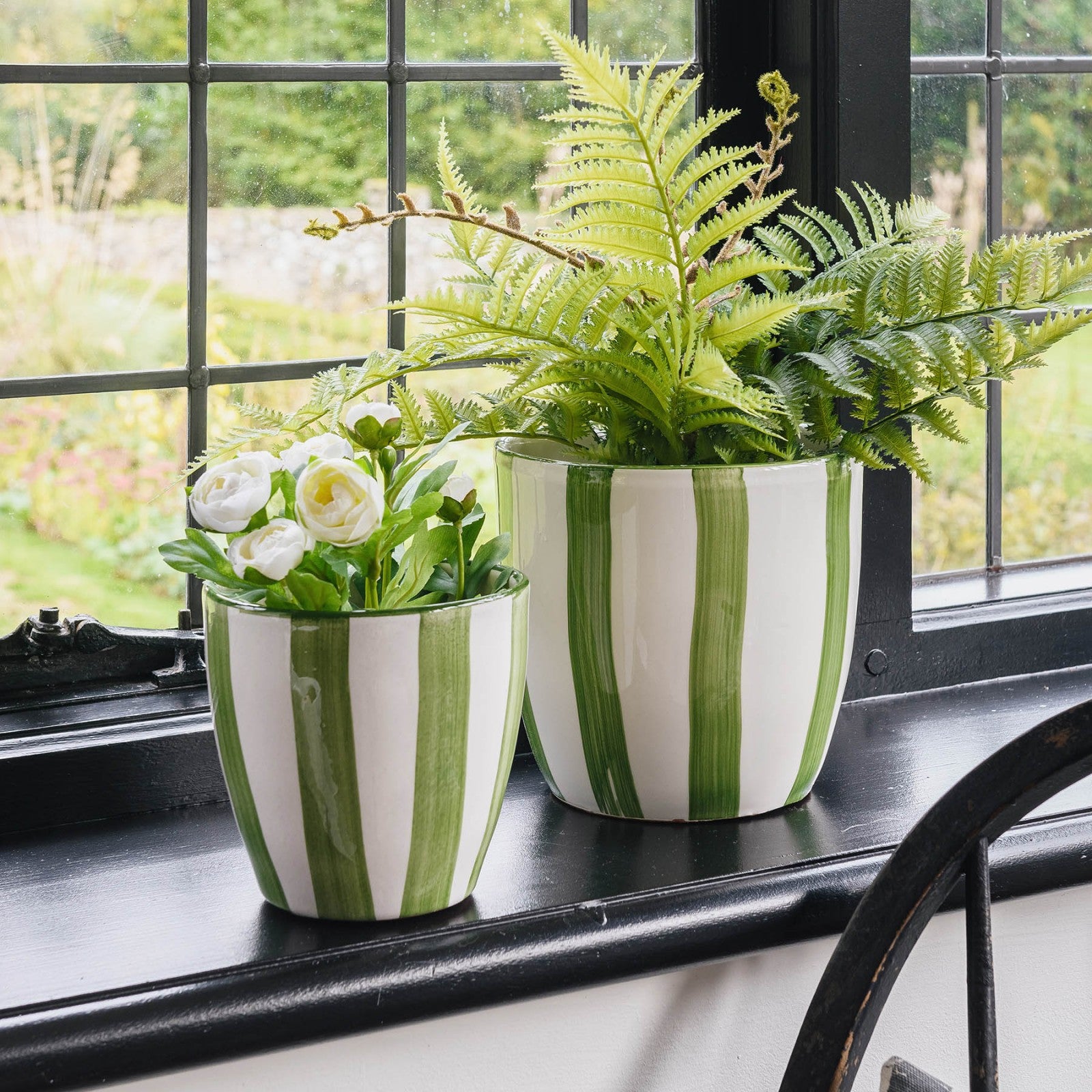 Enhance and invigorate your plants with these stunning planters! Designed with a vibrant green stripe pattern, they add a pop of color and style to your botanical collection.