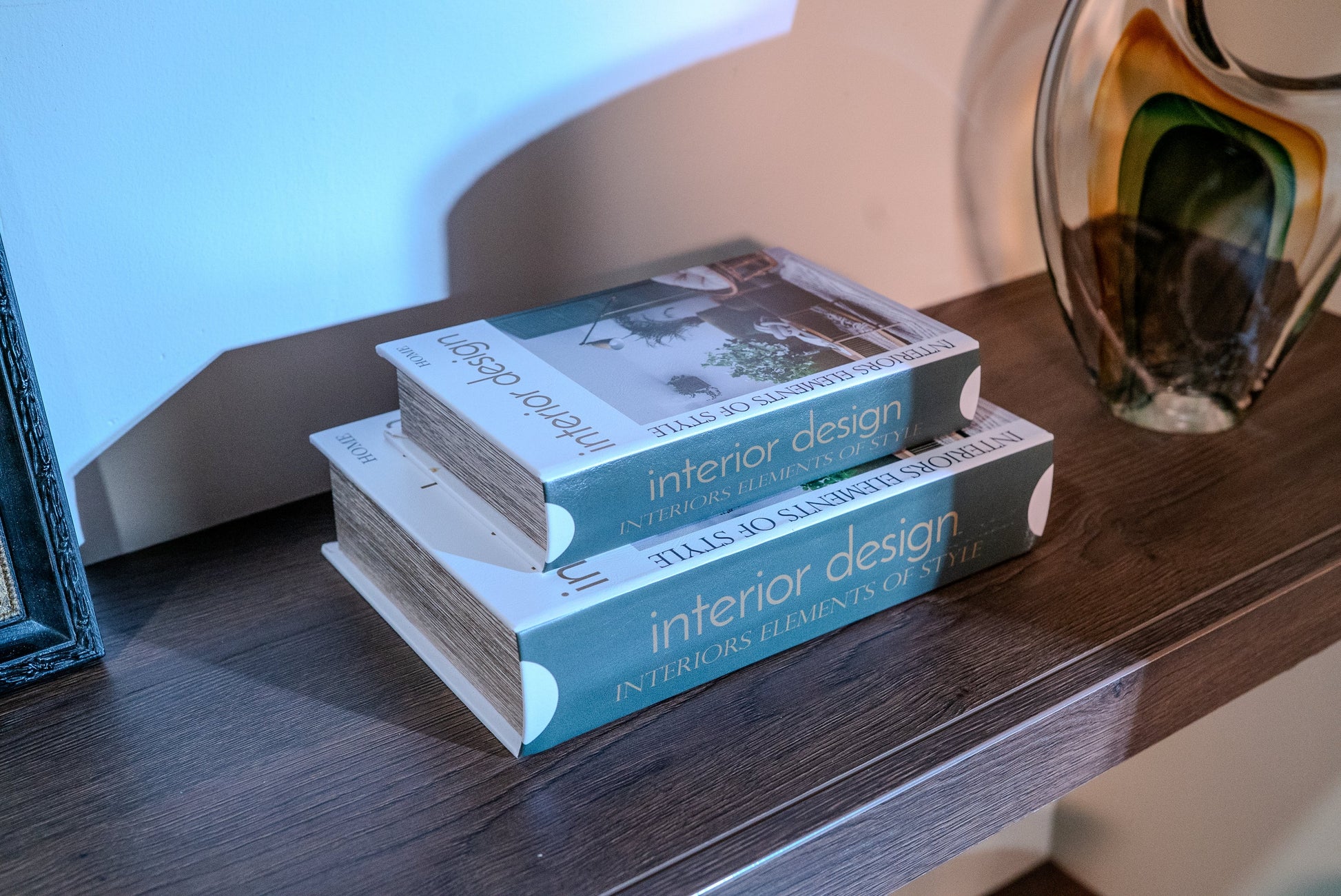 Add a touch of style and clever storage to your home with this set of two Interior Design decorative book boxes. Finished with covers inspired by interiors and lifestyle design, they are the perfect accent for coffee tables, shelves, or console styling.