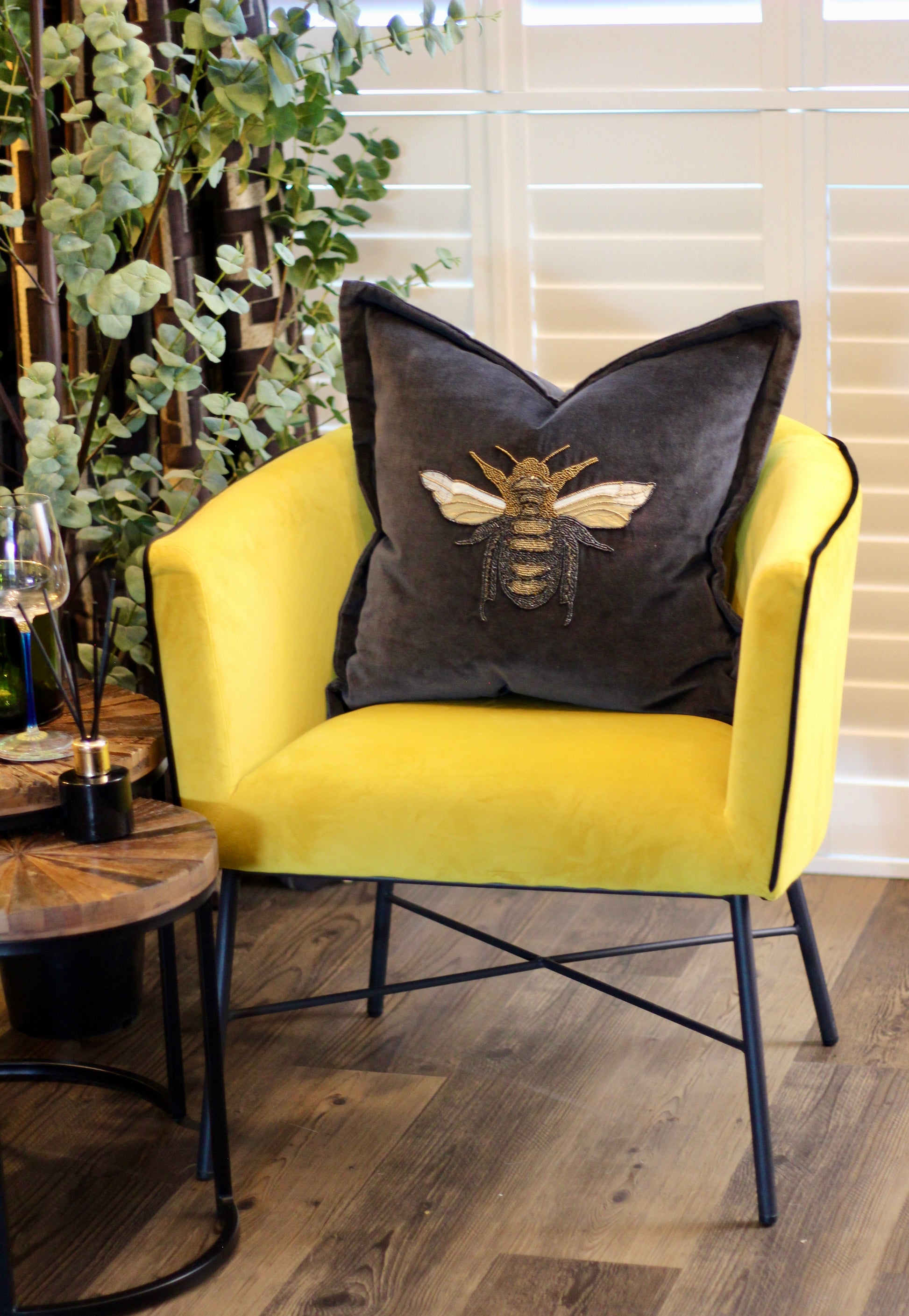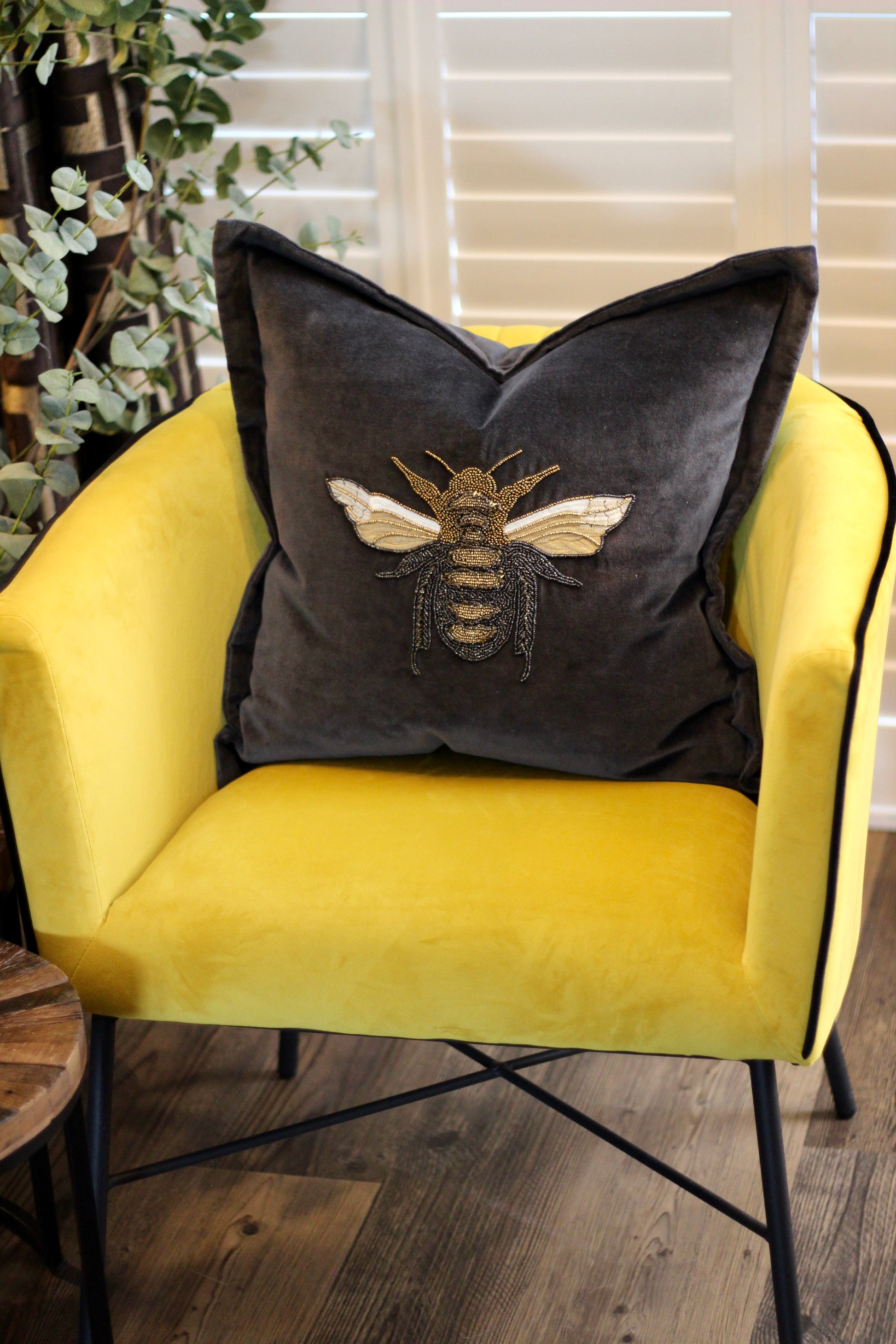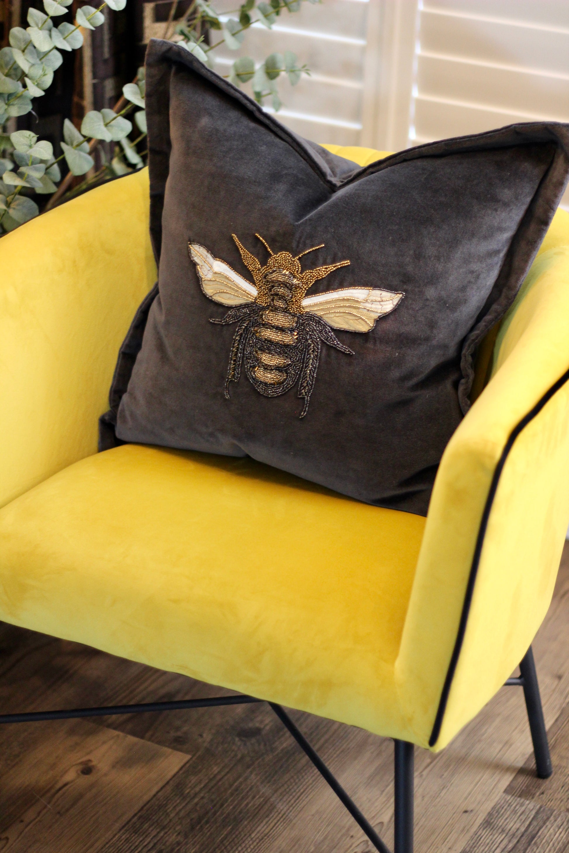 Indulge in luxury with our breathtaking black velvet cushion featuring an exquisitely detailed embellished bee design, making it the ultimate statement piece.