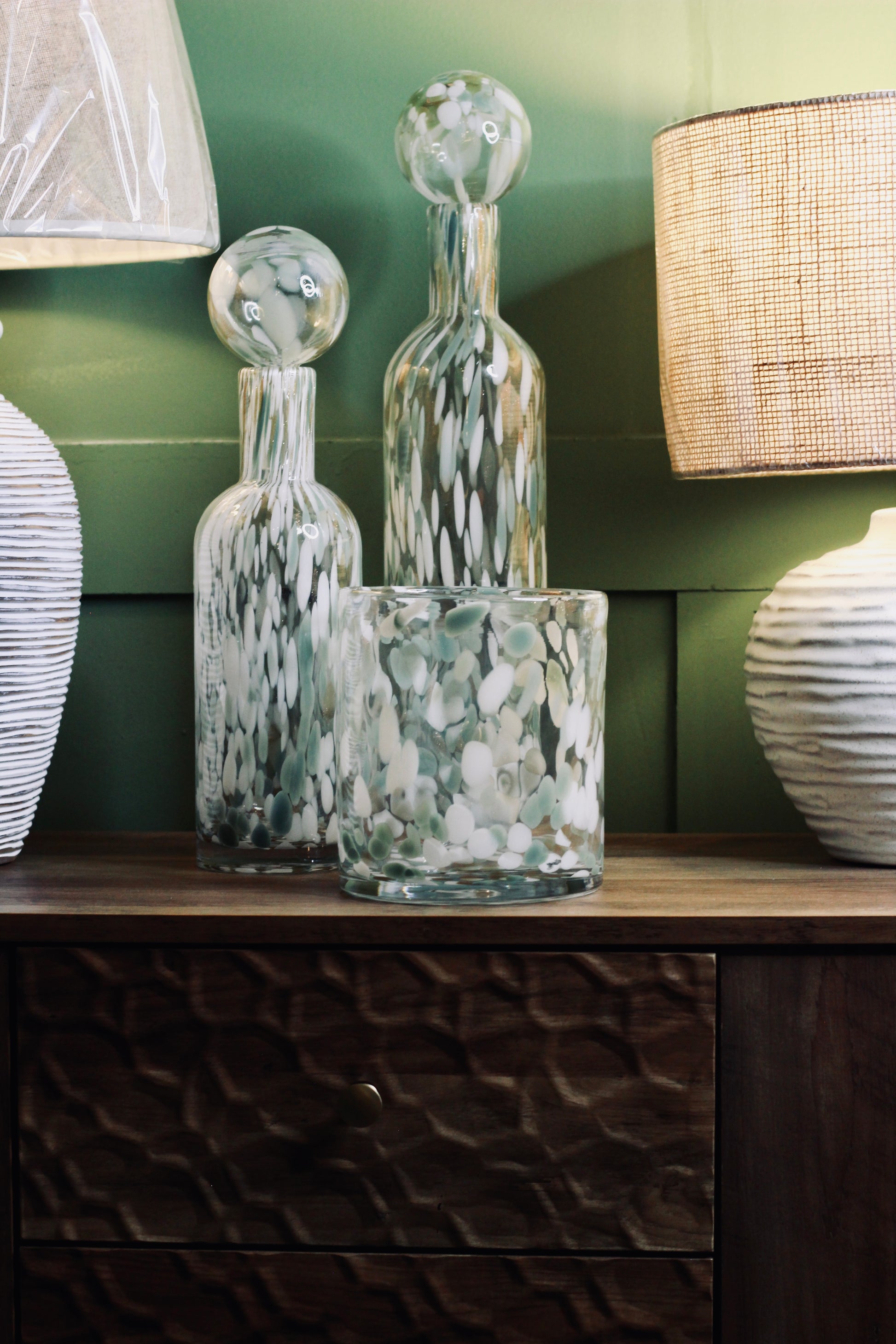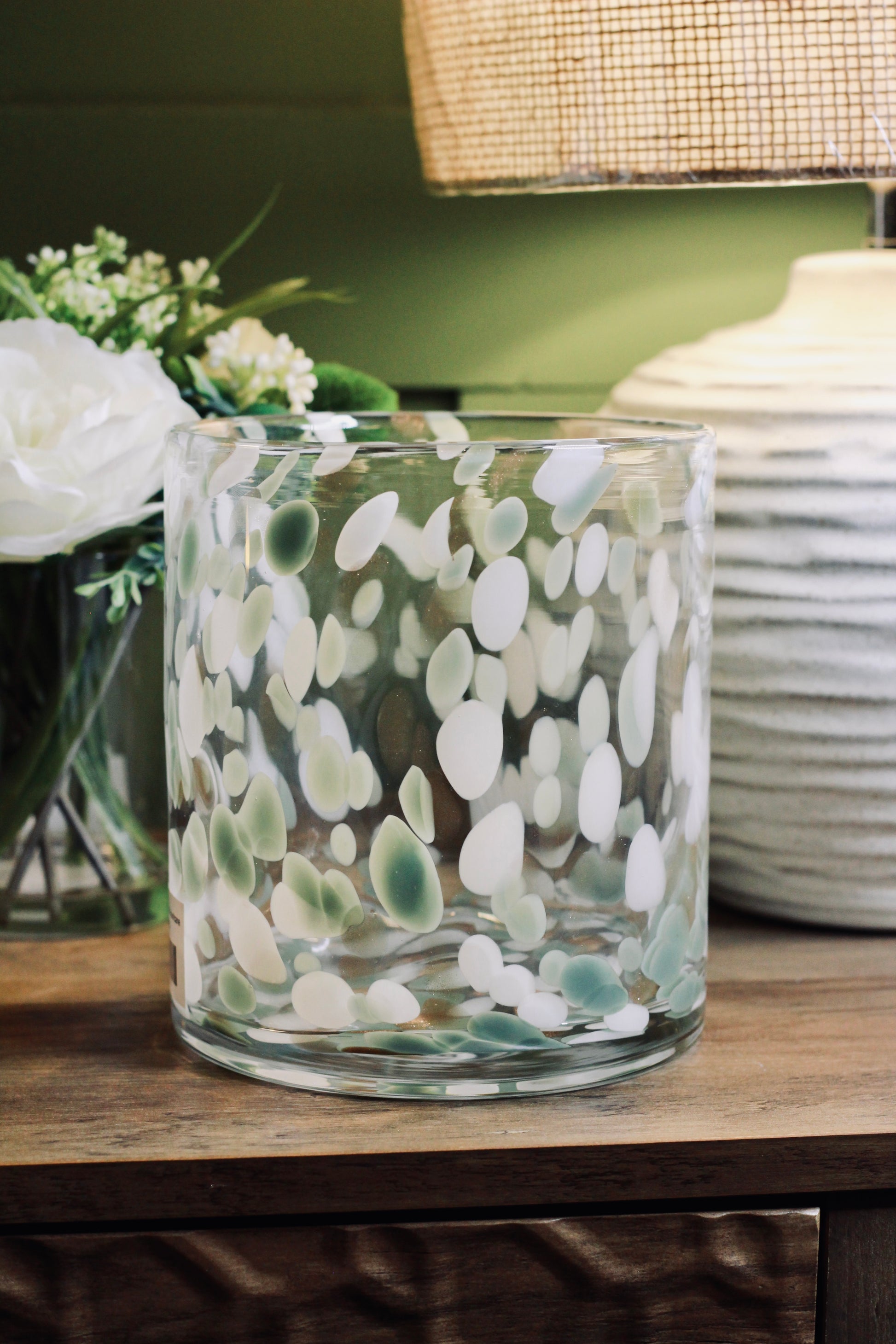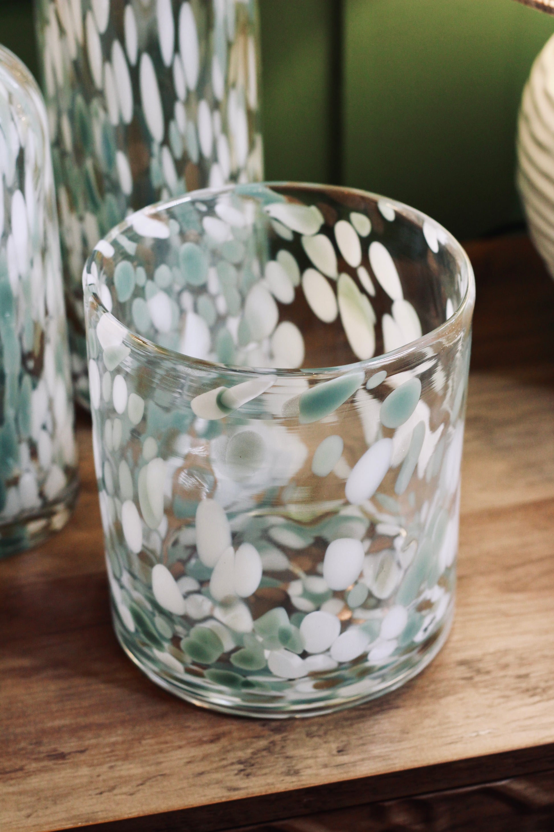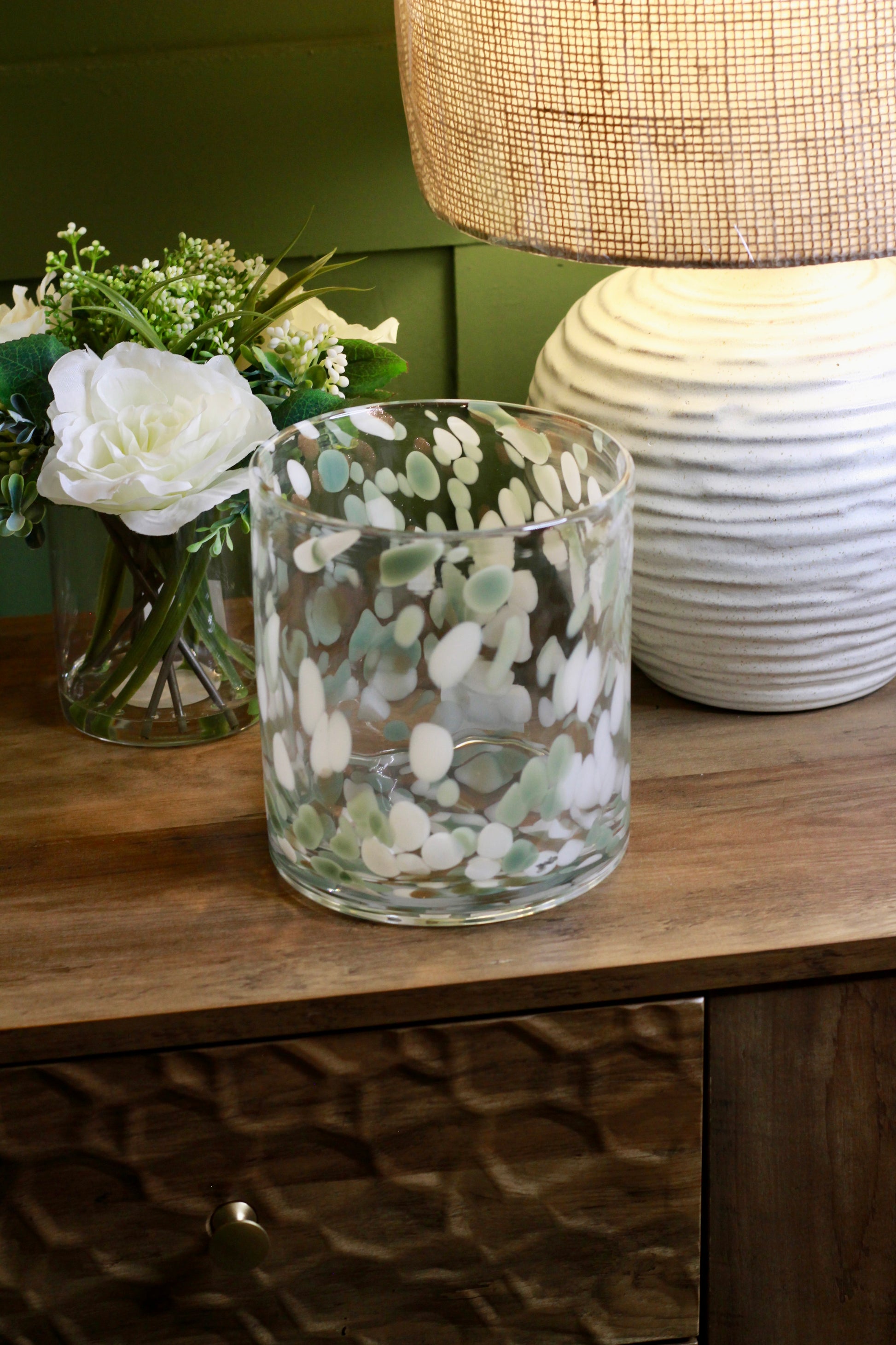 This beautiful decorative hurricane candle holder showcases a mesmerising pattern of pistachio, white, and gold flecks. They complement each other perfectly when paired with the large and small pistachio fleck bottles.