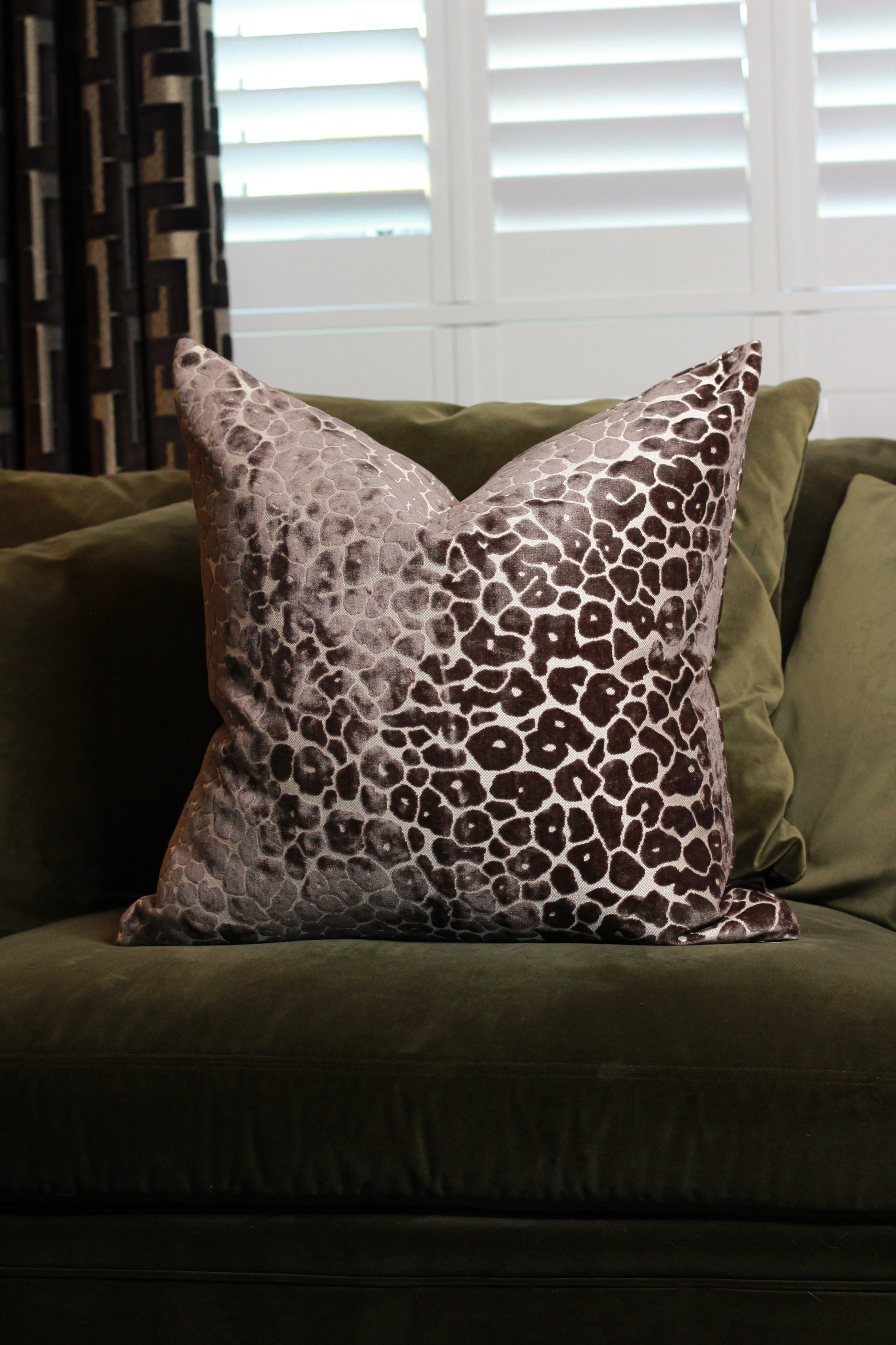 Liven up your space with this eye-catching Mocha Brown Velvet Cut Leopard Cushion, featuring a striking leopard spot pattern on soft stylish velvet.