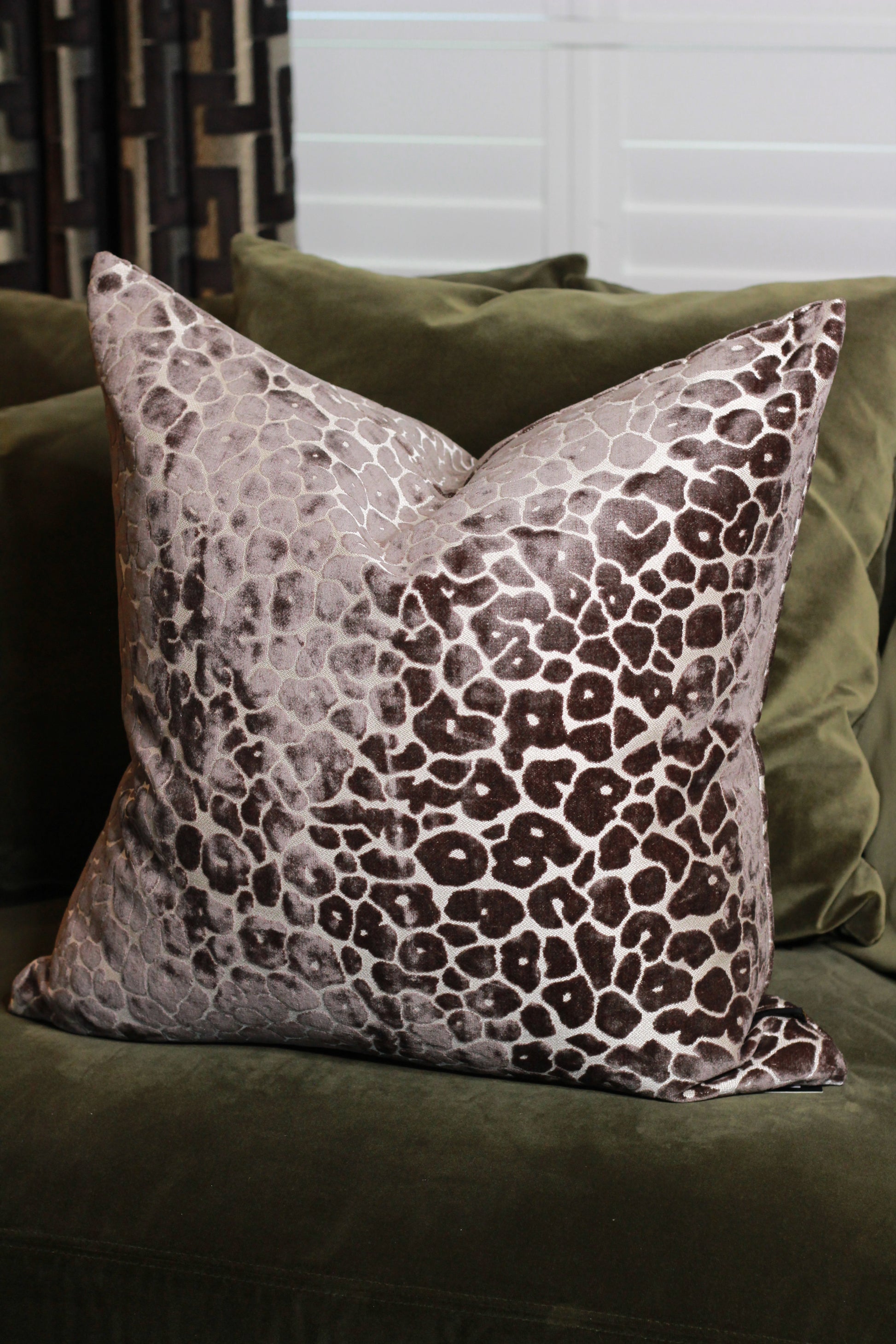 Mocha Velvet Cut Leopard Spot Cushion - Large