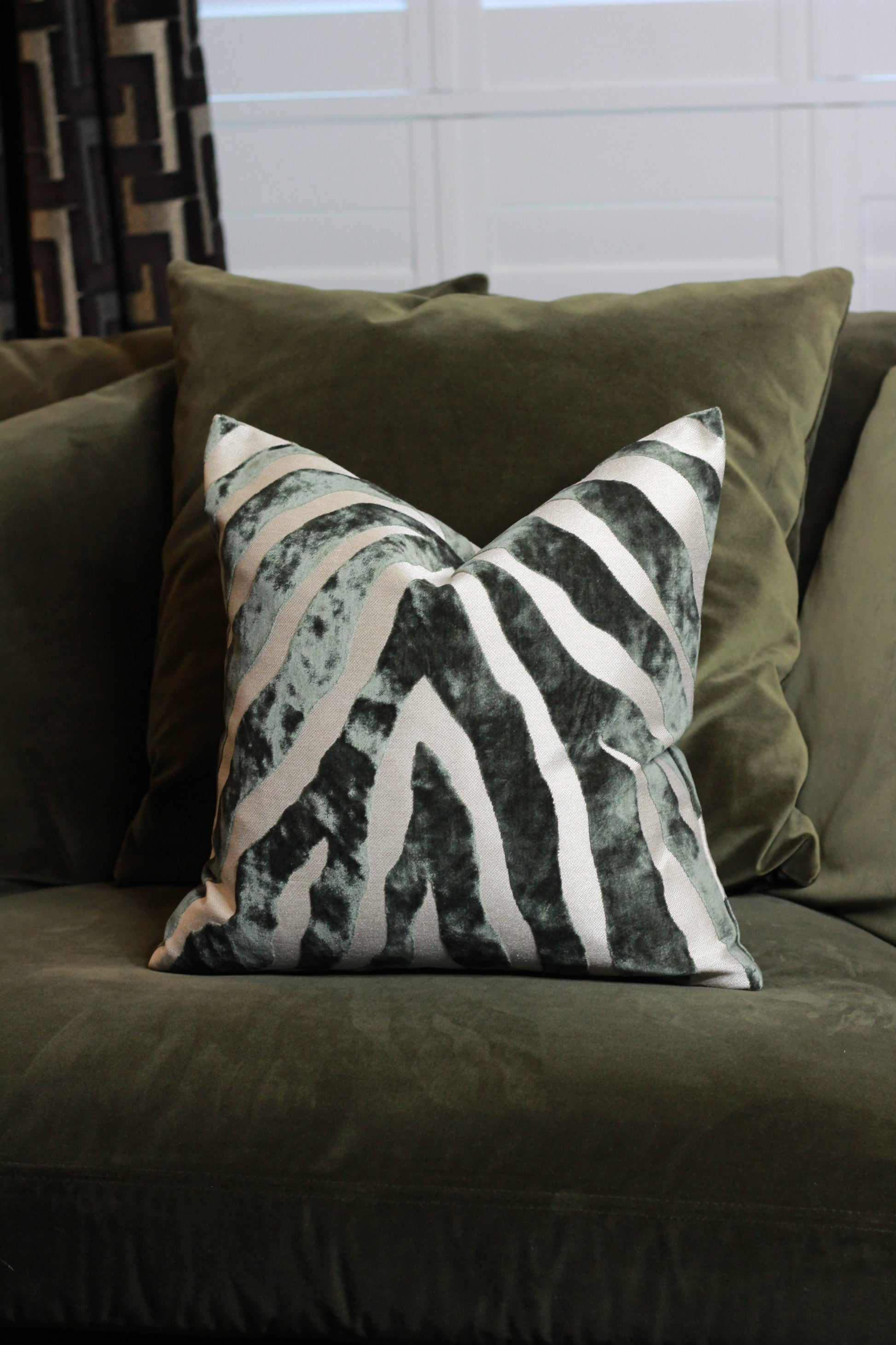 Liven up your space with this eye-catching Sage Green Velvet Cut Zebra pattern Cushion, featuring a striking Zebra Stripe pattern on soft stylish velvet.