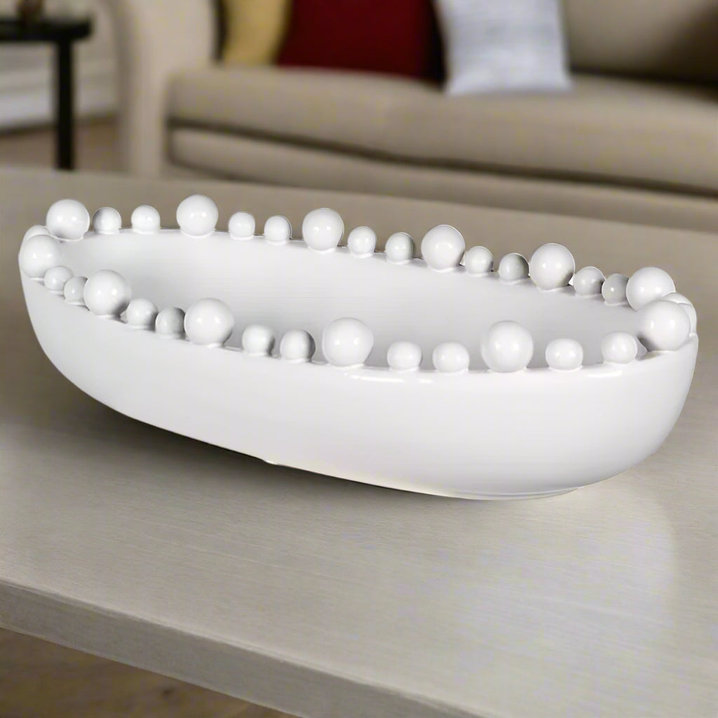 An essential addition to your home's aesthetic, this eye-catching oval bowl is a statement and serves as a charming focal point. Perfect for adding a touch of class to any space!